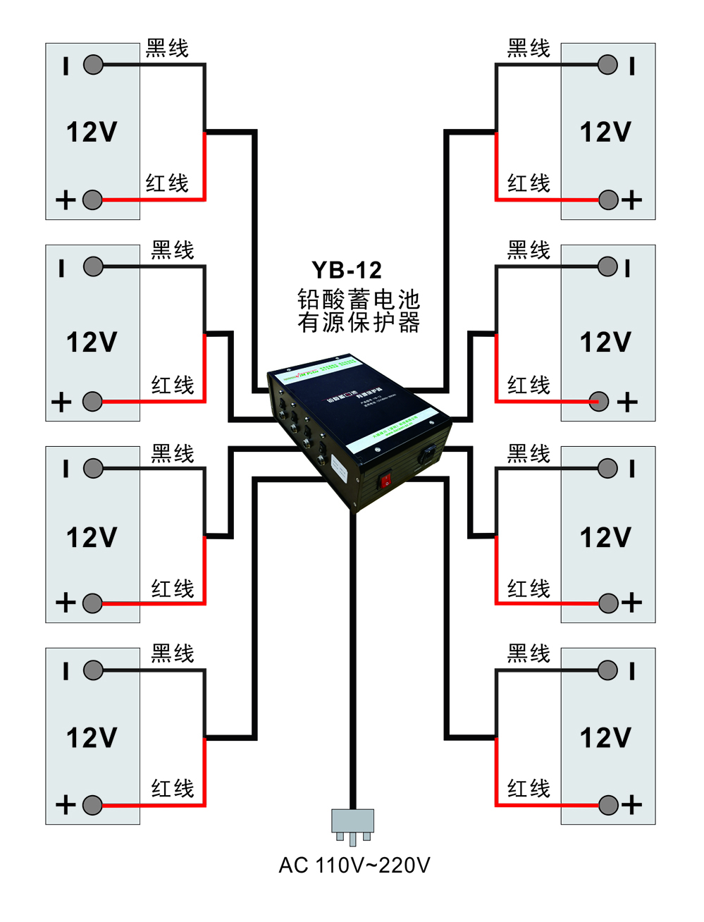 4)根據(jù)鉛酸蓄電池額定電壓的不同, YB系列鉛酸蓄電池有源保護(hù)器設(shè)計有多種規(guī)格型號, 分別用于12V、24V、36V等不同規(guī)格的電池。因此,應(yīng)確保被修復(fù)電池的規(guī)格與所選用的鉛酸蓄電池有源保護(hù)器匹配。